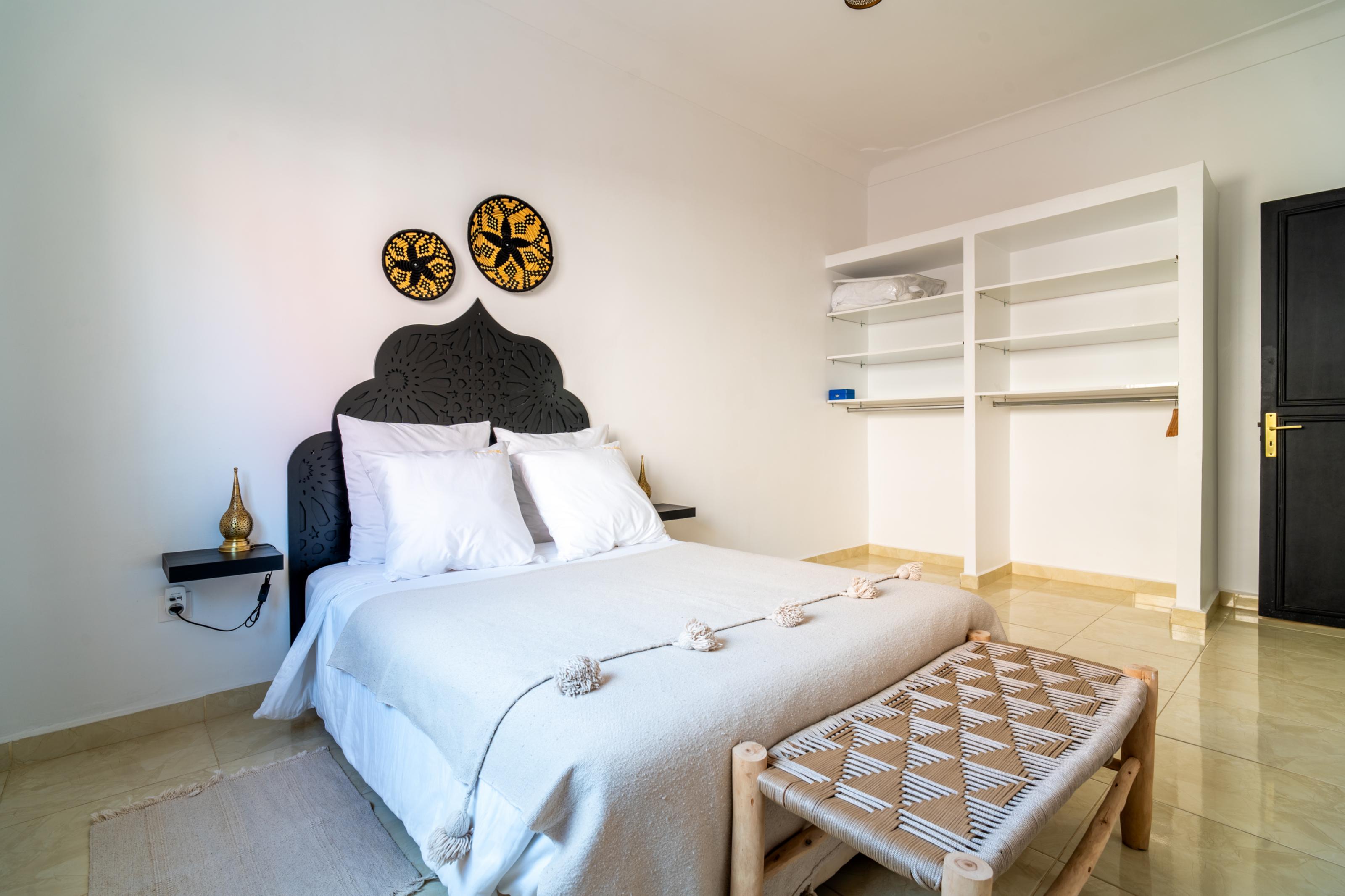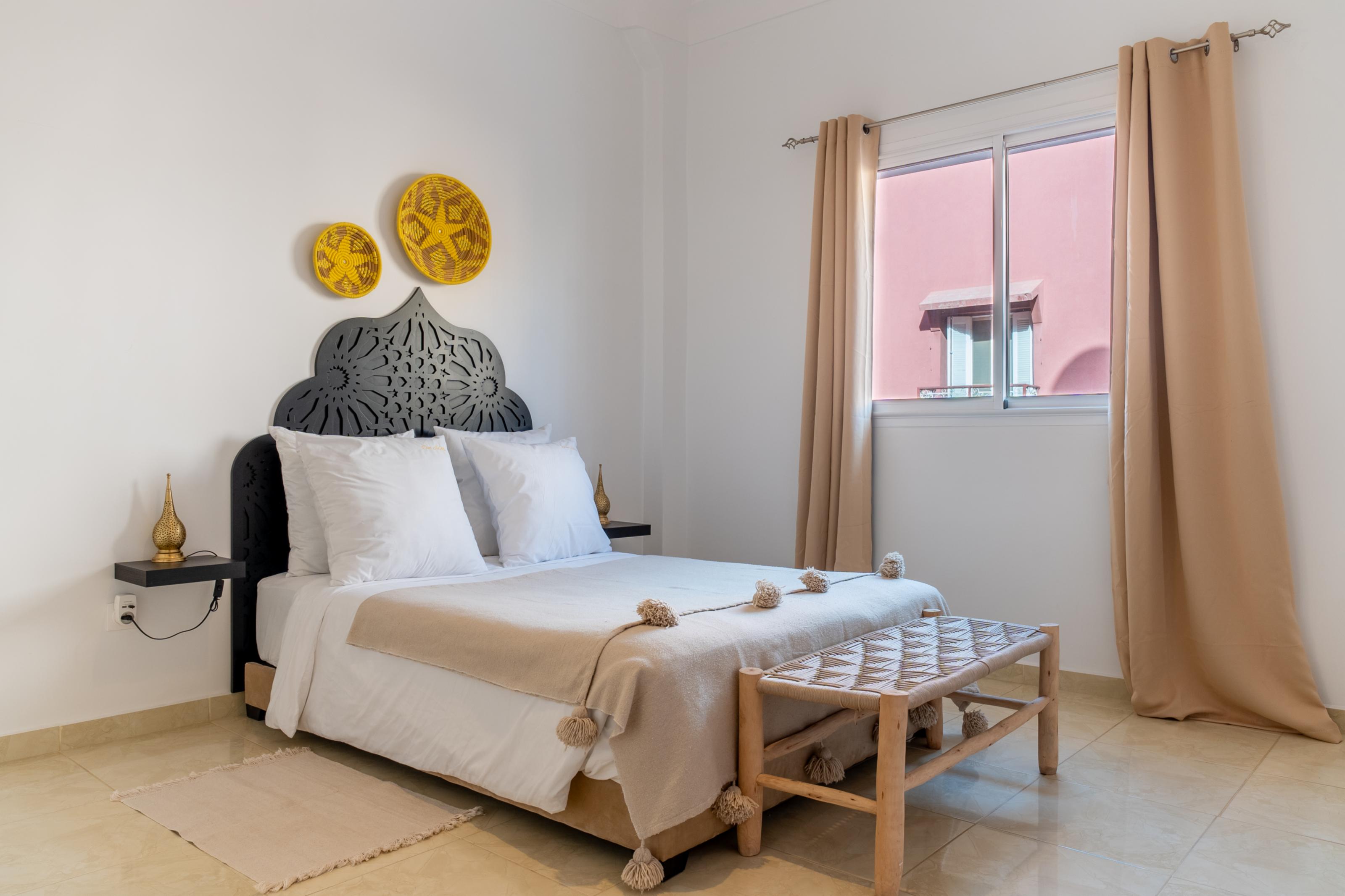 Située au deuxième étage du riad Dar JuMa, cette suite familiale de 100 m² offre un cadre spacieux, confortable et lumineux, parfaitement adapté à un séjour en famille ou entre proches.